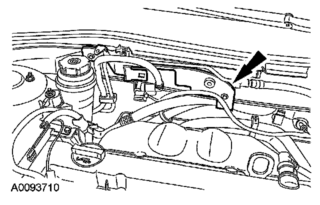 12. Remove the EVAP canister purge valve bracket bolts and position the EVAP canister purge valve and bracket aside.