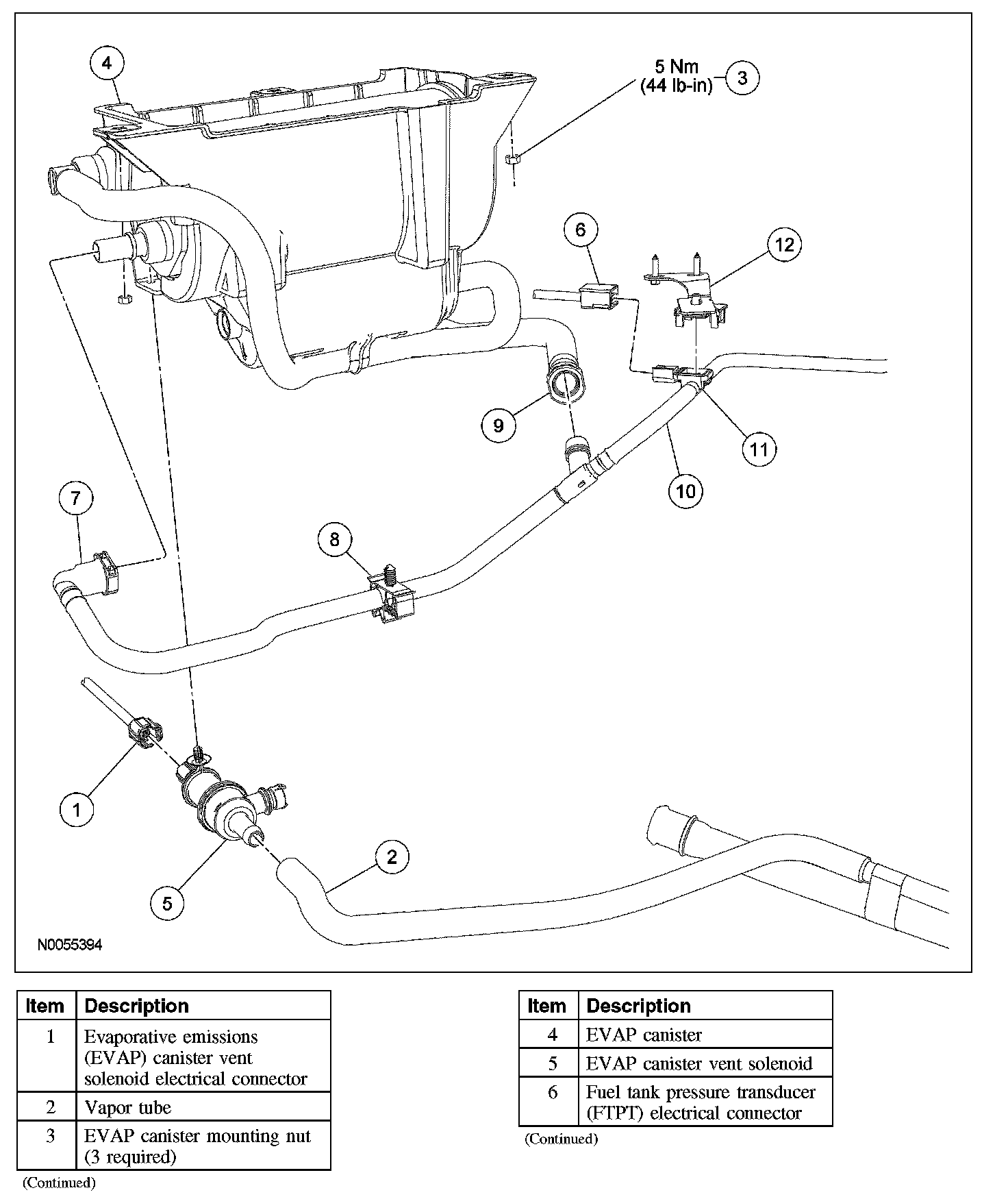 5. Disconnect the vapor tube and remove the EVAP canister vent solenoid.