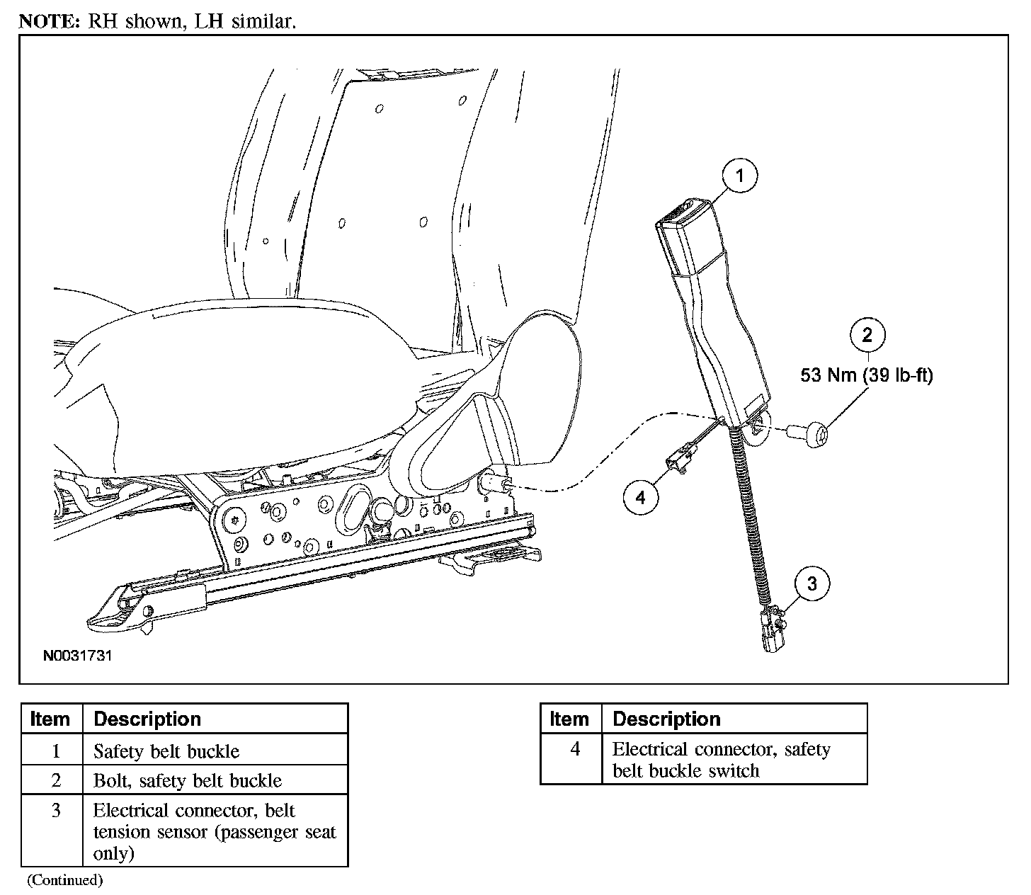 SAFETY BELT BUCKLE - FRONTRemoval and Installation