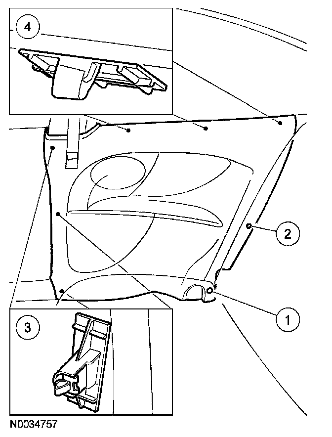 4. NOTE: Certain production trim panels have a retaining clip on the front edge.