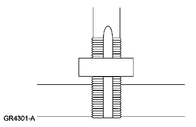 6. If the bolt(s) on the height adjuster is not stripped, reinstall the original safety belt shoulder height adjuster. If the bolt(s) is stripped, install a new safety belt shoulder height adjuster.