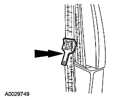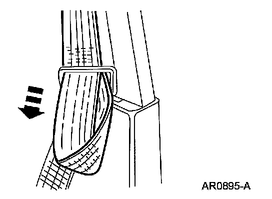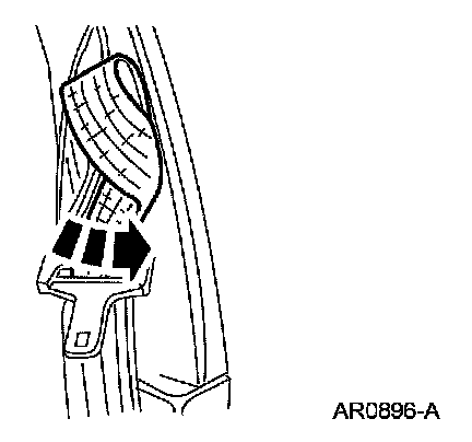 SAFETY BELT TONGUE ROTATED ON BELT1. Grasp the belt tongue and pull the belt webbing down to form a loop through the upper (longer and narrower) slot in the tongue.