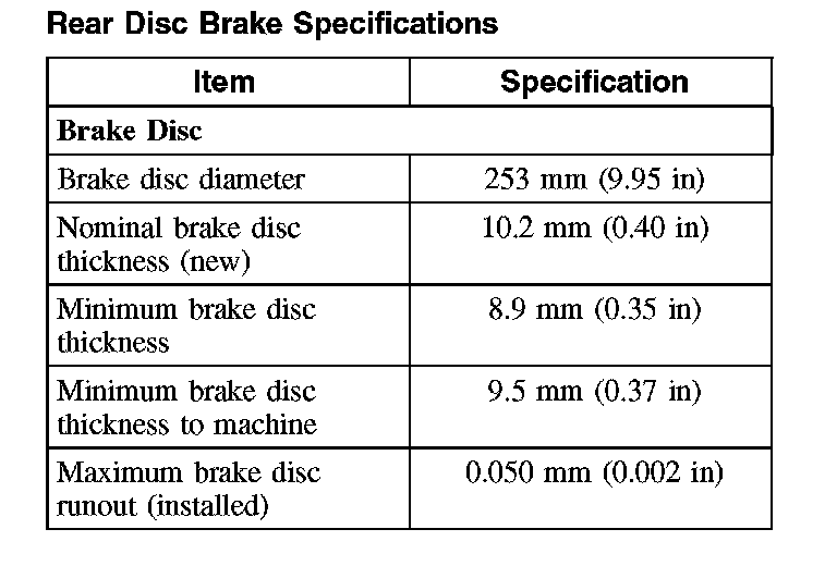 Rear Disc Brake Specifications: