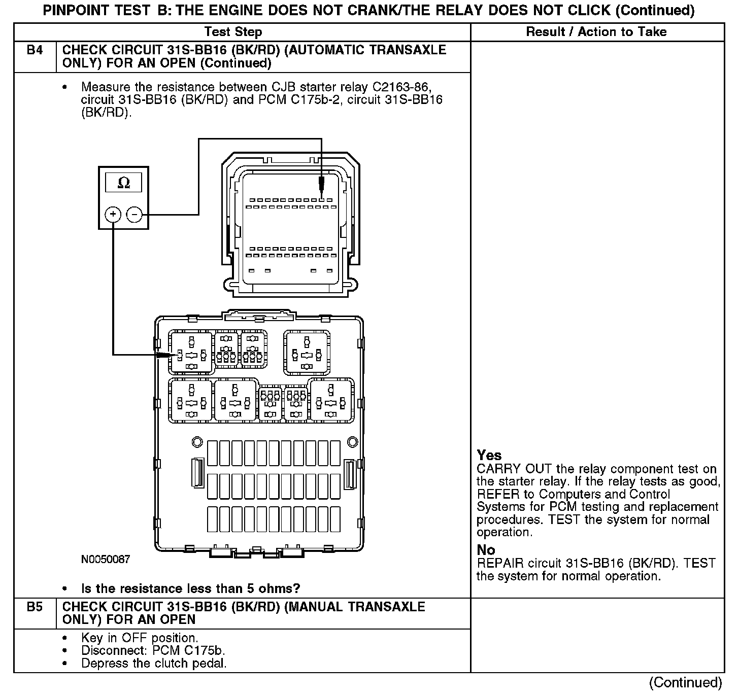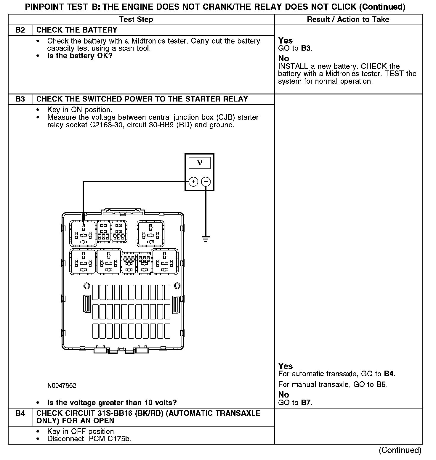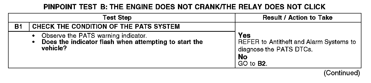 PINPOINT TEST B: THE ENGINE DOES NOT CRANK/THE RELAY DOES NOT CLICKB1: