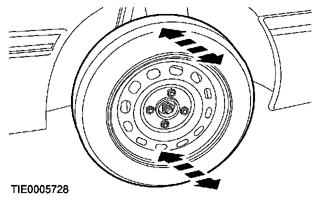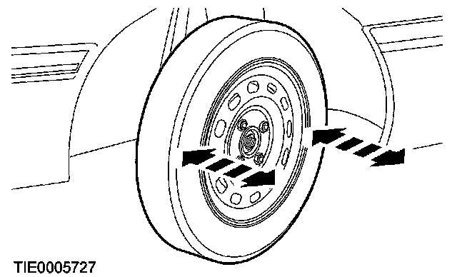 4. Firmly grasp the road wheel and apply a rocking motion to the wheel, checking for any freeplay in the wheel bearings or suspension components: install new components as necessary. For additional information, refer to Front Suspension.