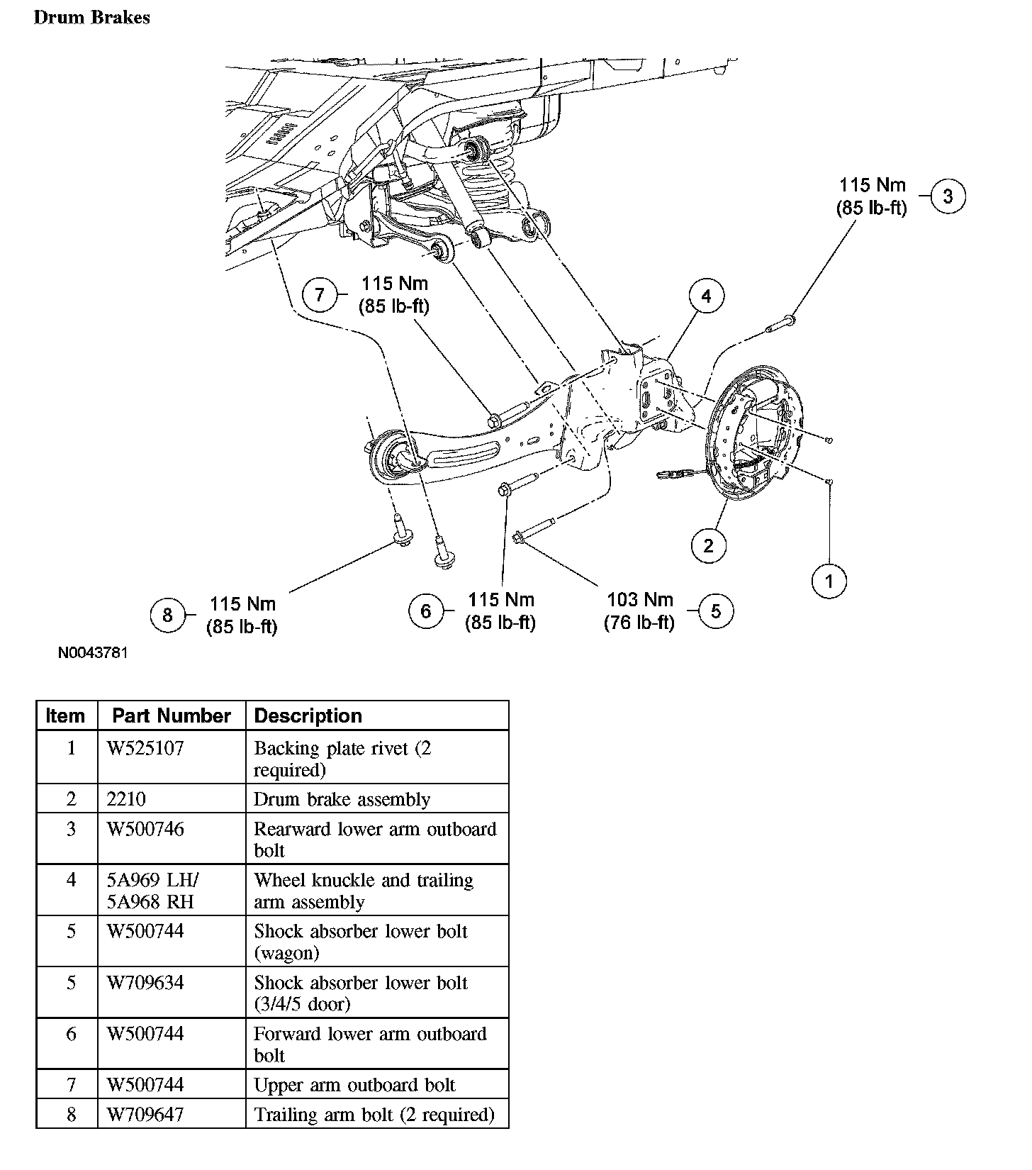 CAUTION: Suspension fasteners are critical parts because they affect performance of vital parts and systems and their failure can result in major service expense. A new part with the same part number must be installed if installation becomes necessary. Do not use a replacement part of lesser quality or substitute design. Torque values must be used as specified during reassembly to make sure of correct retention of these parts.