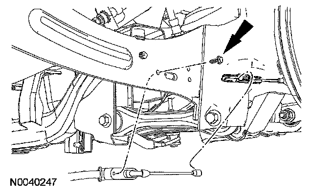 9. Remove and discard the forward lower arm outboard bolt.
