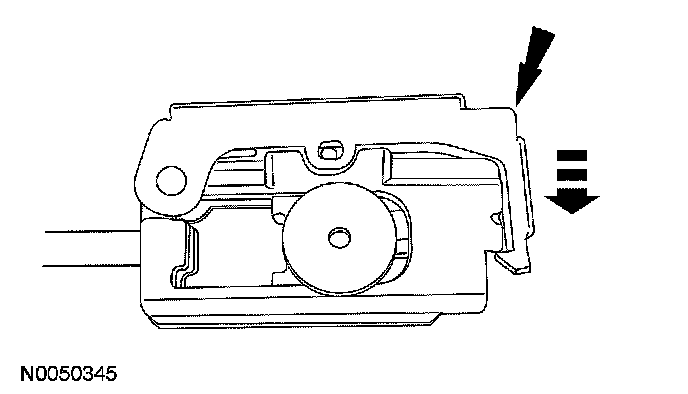 6. NOTE: When installing the shift cable, make sure that the shift cable locking tabs are locked in place and the cable end is snapped onto the ball stud. Press the shift cable into the bracket and listen for the cable to click in place. Pull back on the shift cable to make sure that it is locked into the bracket. Also make sure that the shift cable end is correctly installed onto the ball stud. Pull back on the shift cable end to make sure that the cable end is correctly installed.