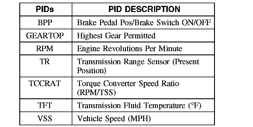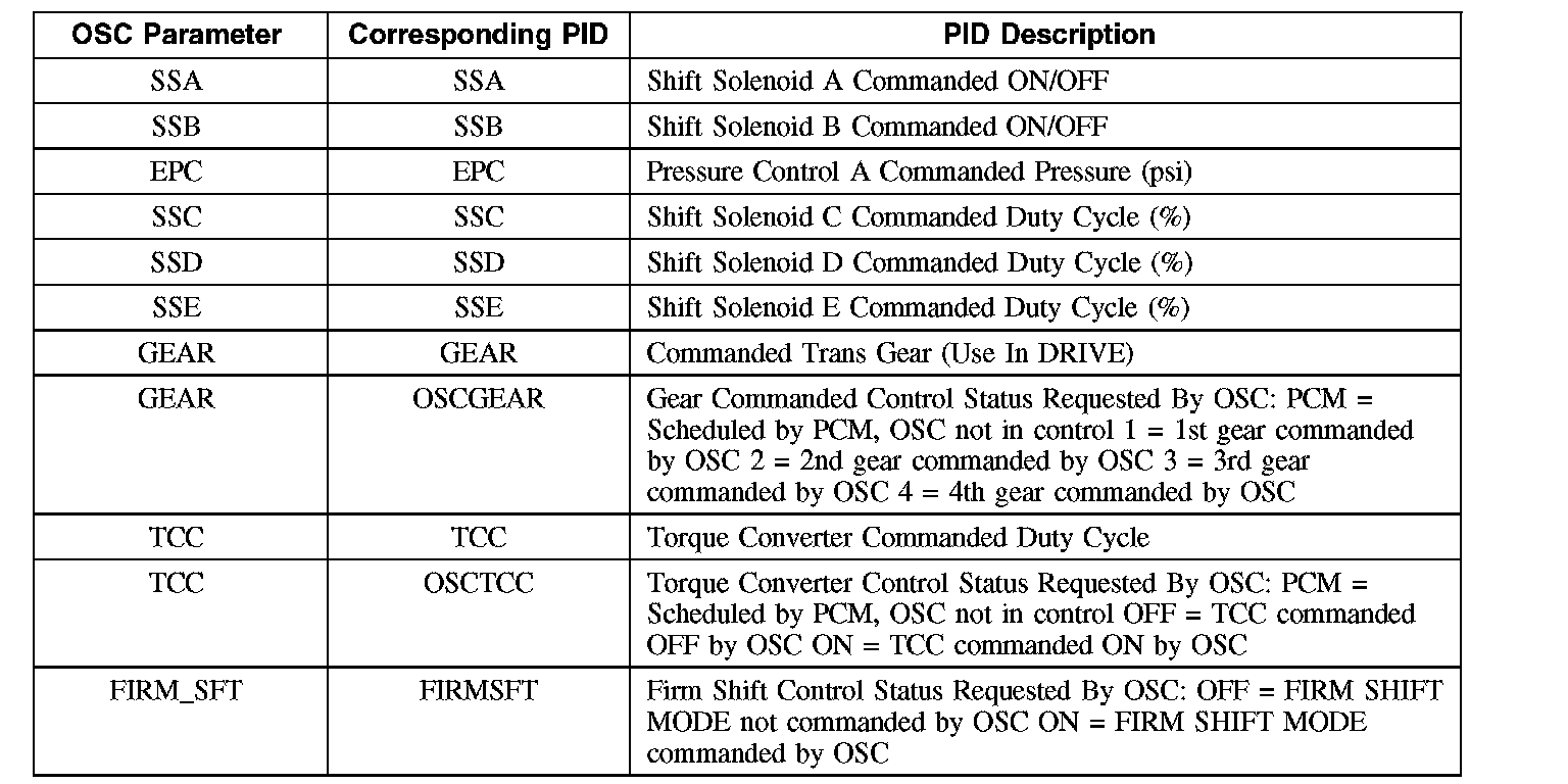 To confirm that the OSC value was sent by the NGS and the PCM has accepted the OSC substitution, a corresponding PID or PIDs for each OSC parameter should be monitored. Additional PIDs should be monitored to help the technician adequately diagnose the transaxle.