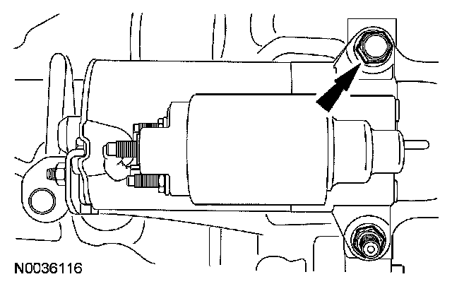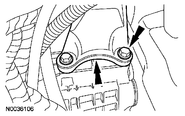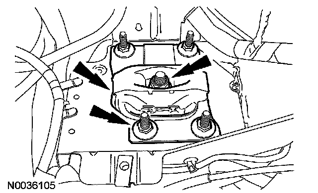 14. Remove the 3 bolts and the rear engine mount bracket.