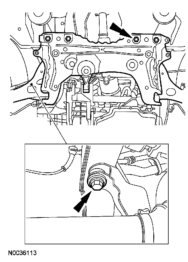 Position a suitable lifting device under the subframe. Remove the 6 subframe bolts.