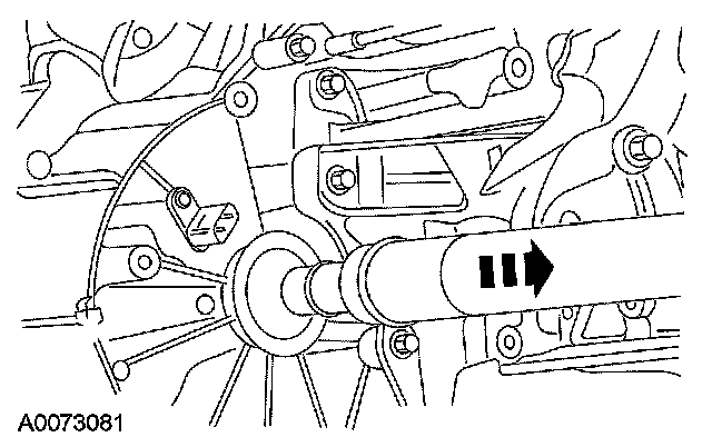 Using the special tool and a suitable slide hammer, remove the LH halfshaft from the transmission. Position it aside and secure it with mechanic's wire.