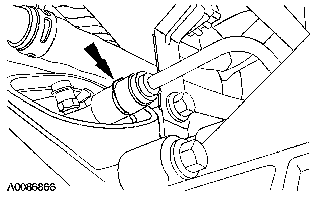 10. Disconnect the hydraulic clutch line and grommet from the retaining bracket.