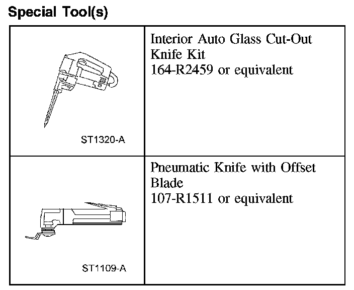 WARNING: To prevent glass splinters from entering the eyes or cutting the hands, wear safety glasses and heavy gloves when cutting the glass from the vehicle. Failure to follow these instructions may result in personal injury.
