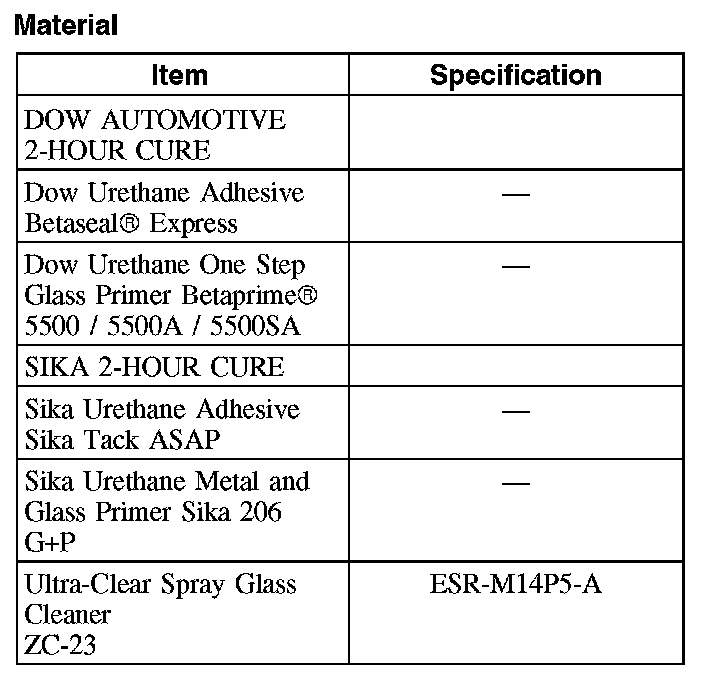 4. CAUTION: Be sure to use the same brand of cure-rate products for the adhesive and primer. Do not mix different brands of urethane and primer. Refer to the Material Chart in this procedure.