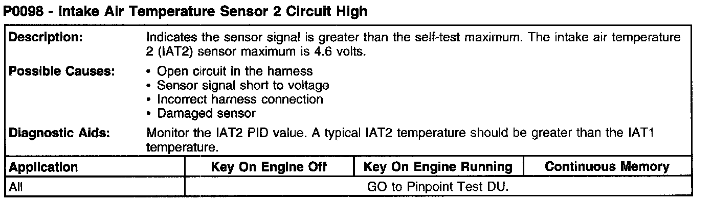 P0098 - Intake Air Temperature Sensor 2 Circuit High: