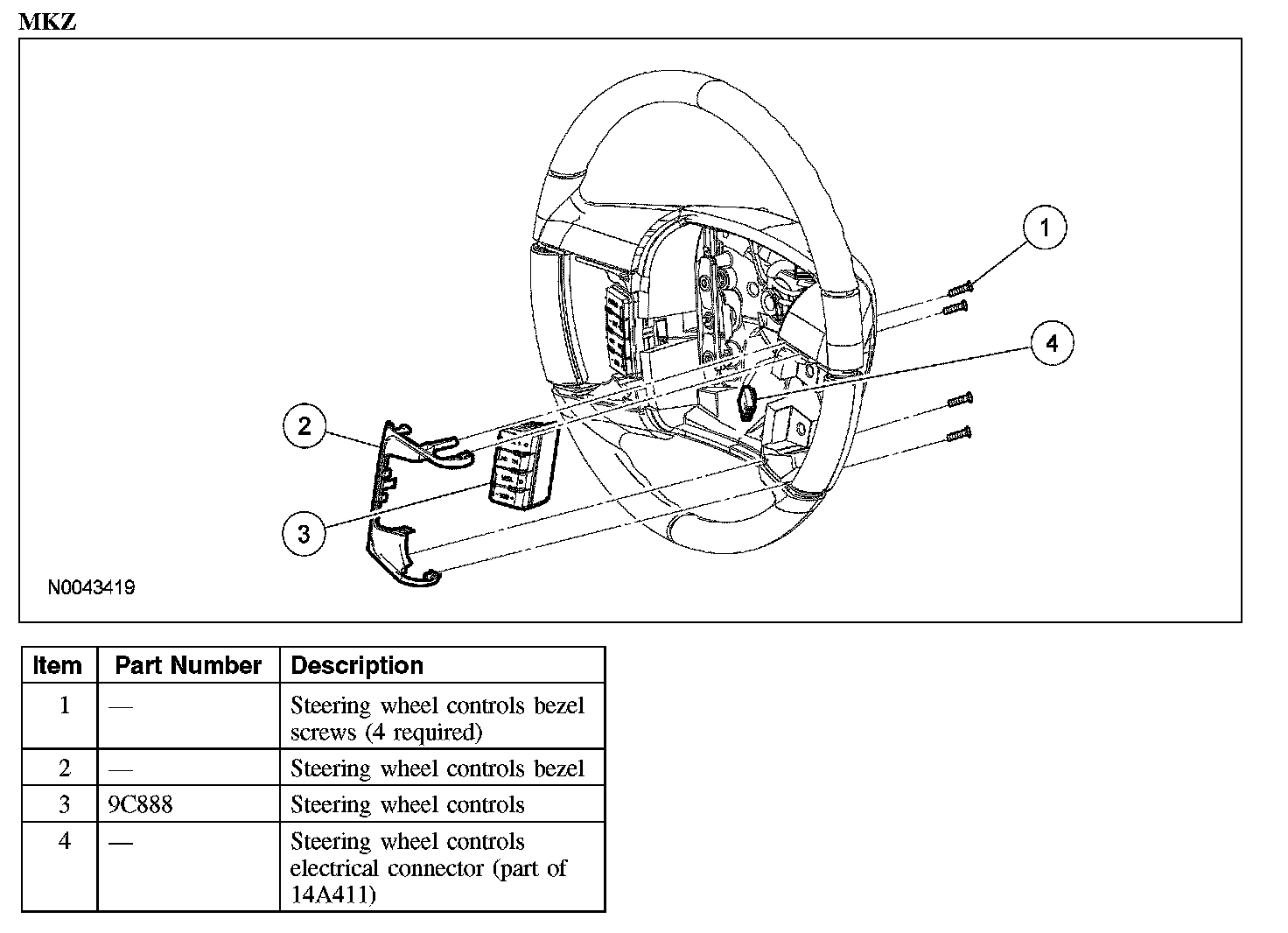 2. Remove the 4 screws and the steering wheel controls bezel.