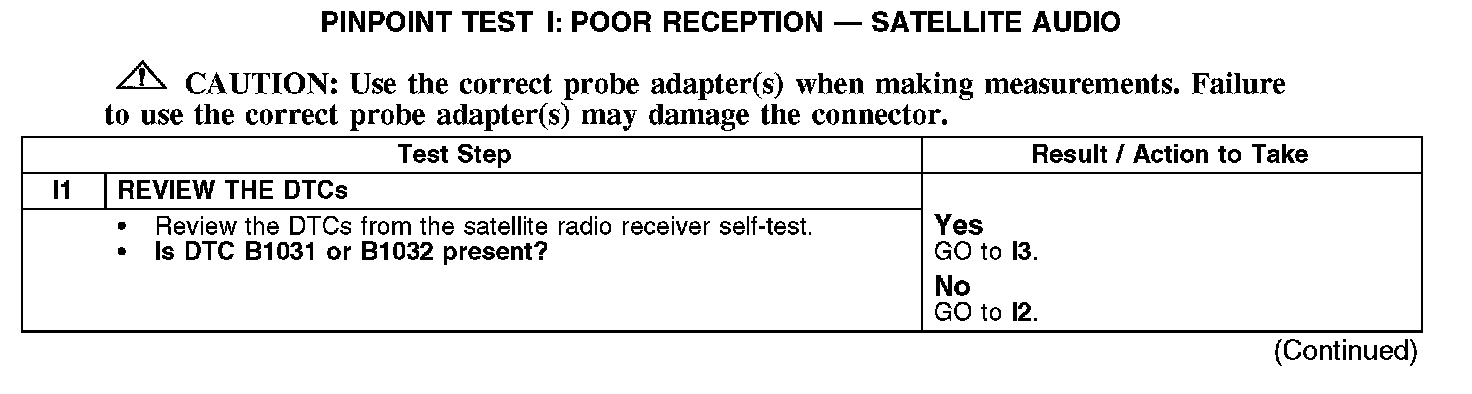 DTC B1031 - sets when an open or high resistance is detected in the satellite antenna circuit.