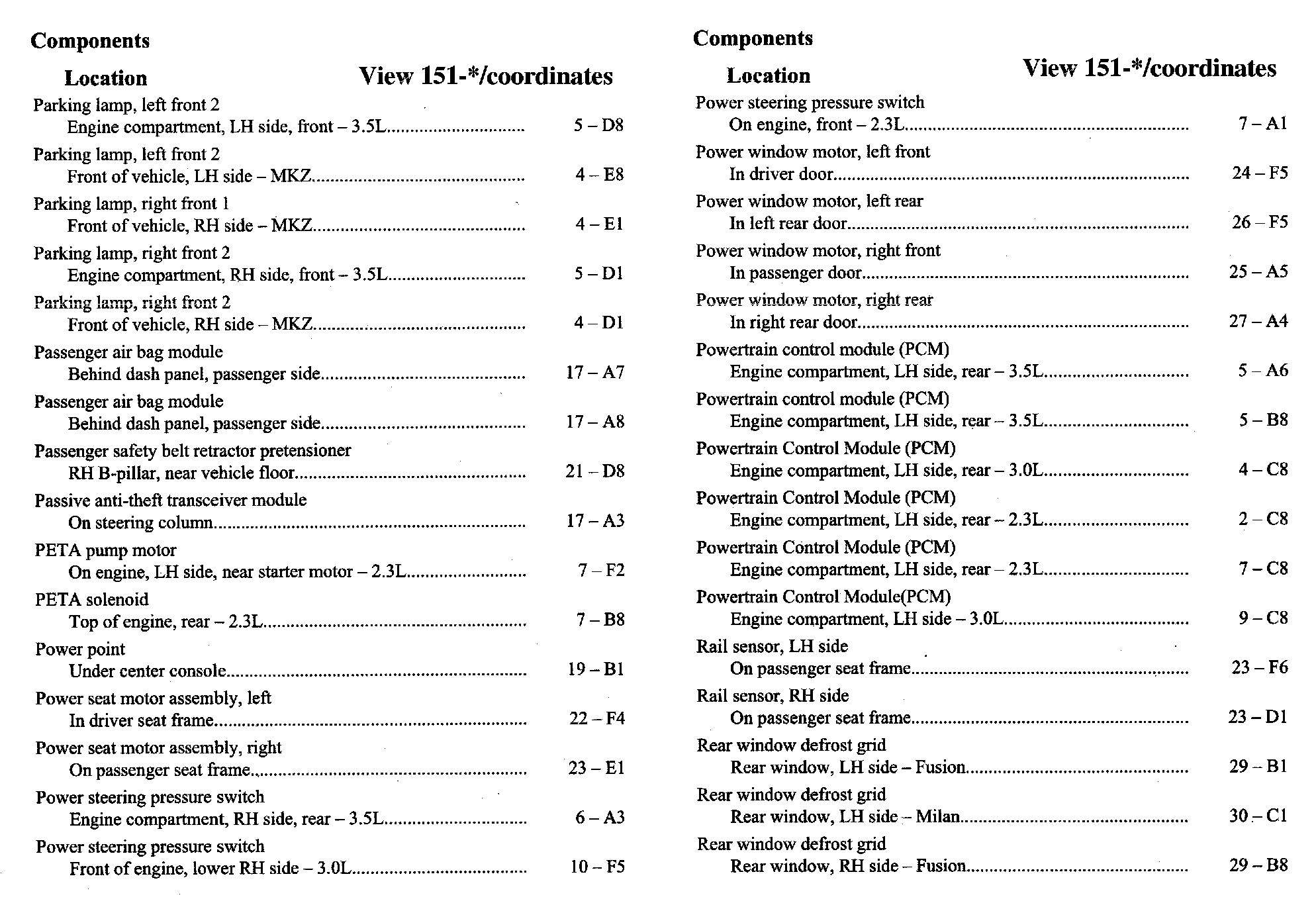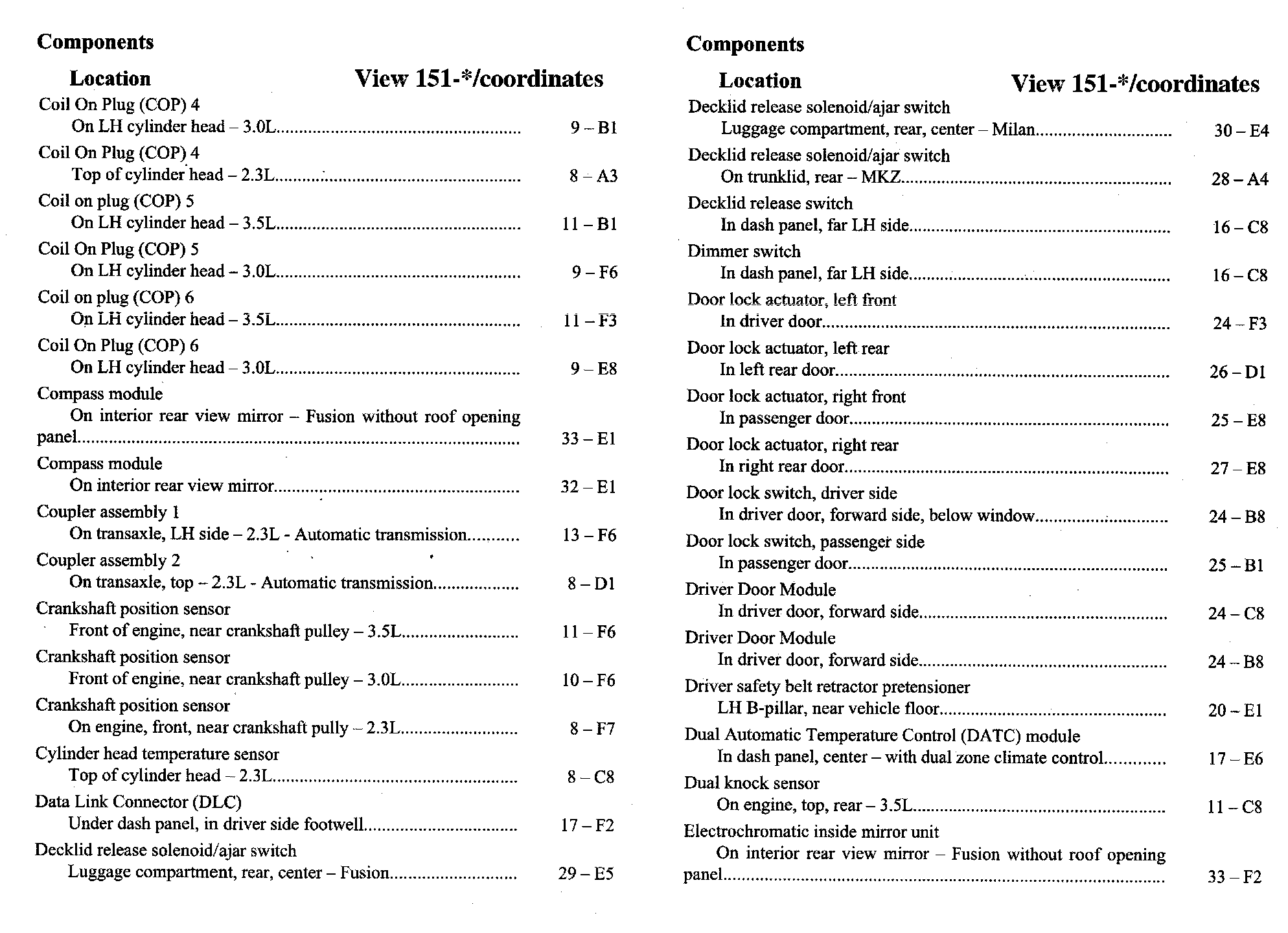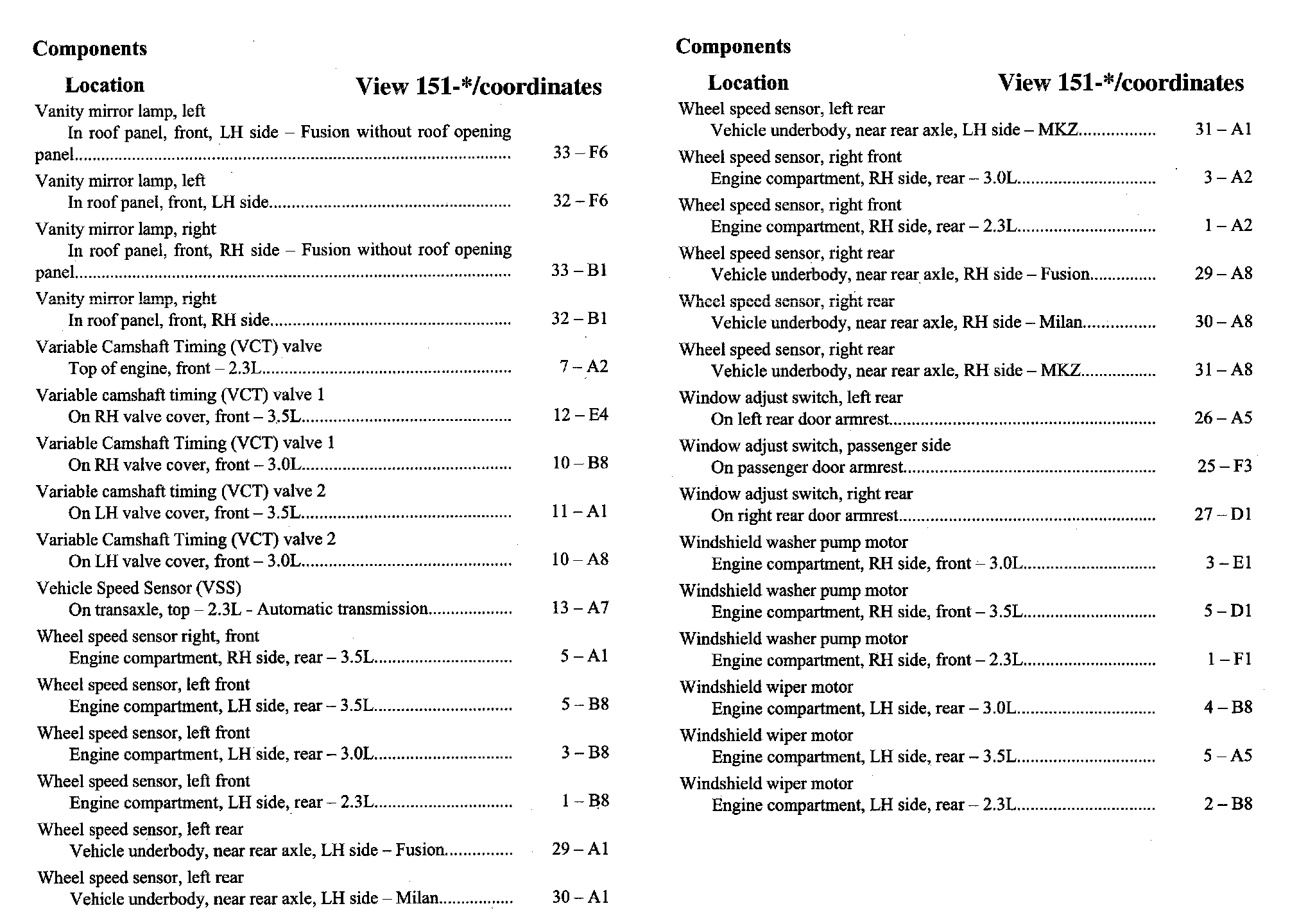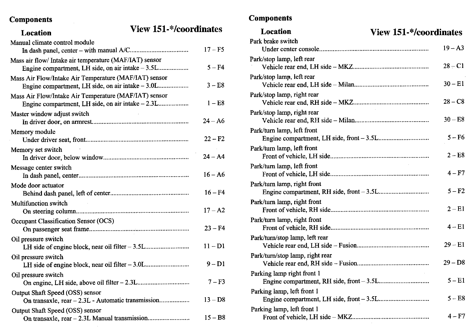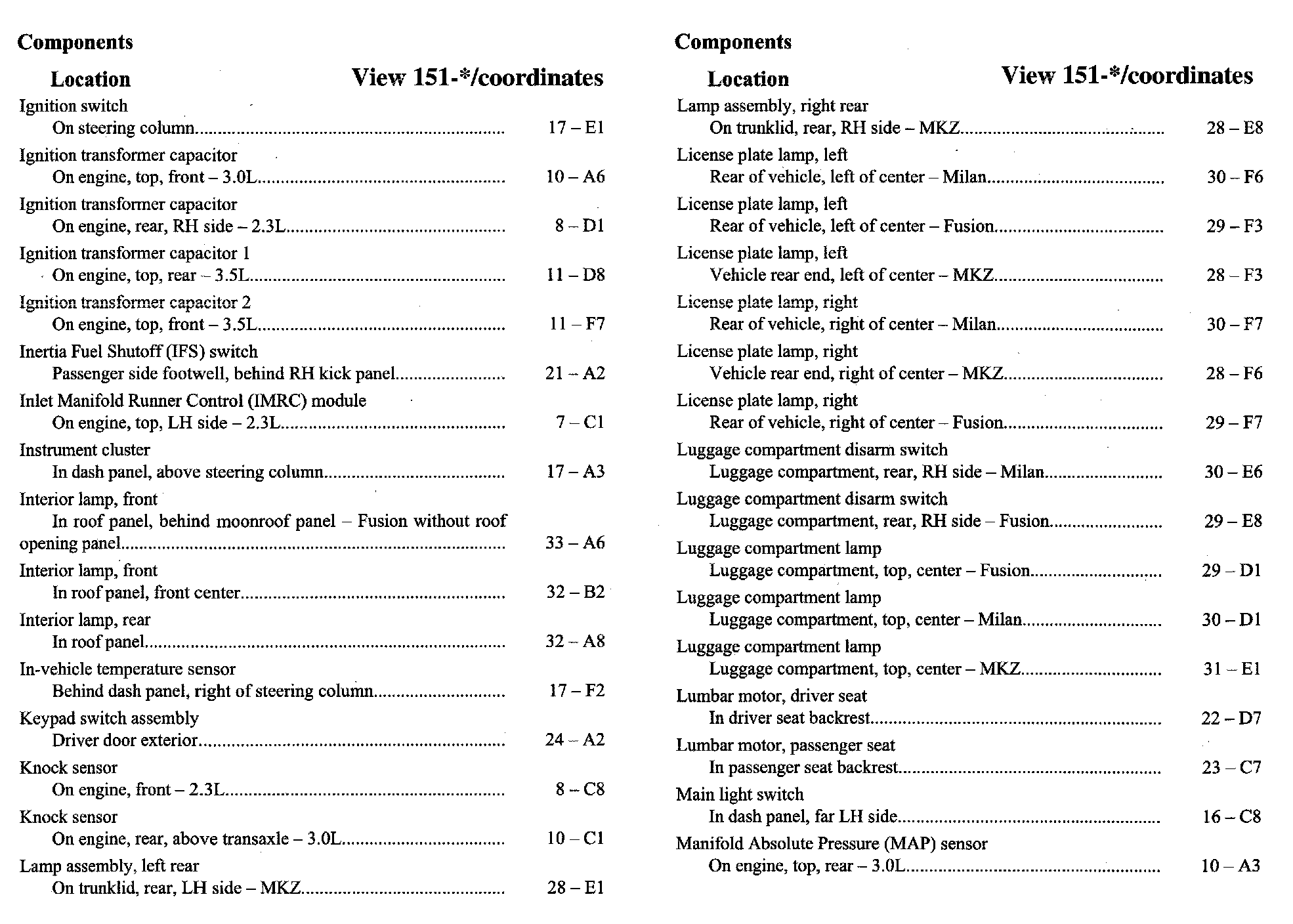Component Location Index