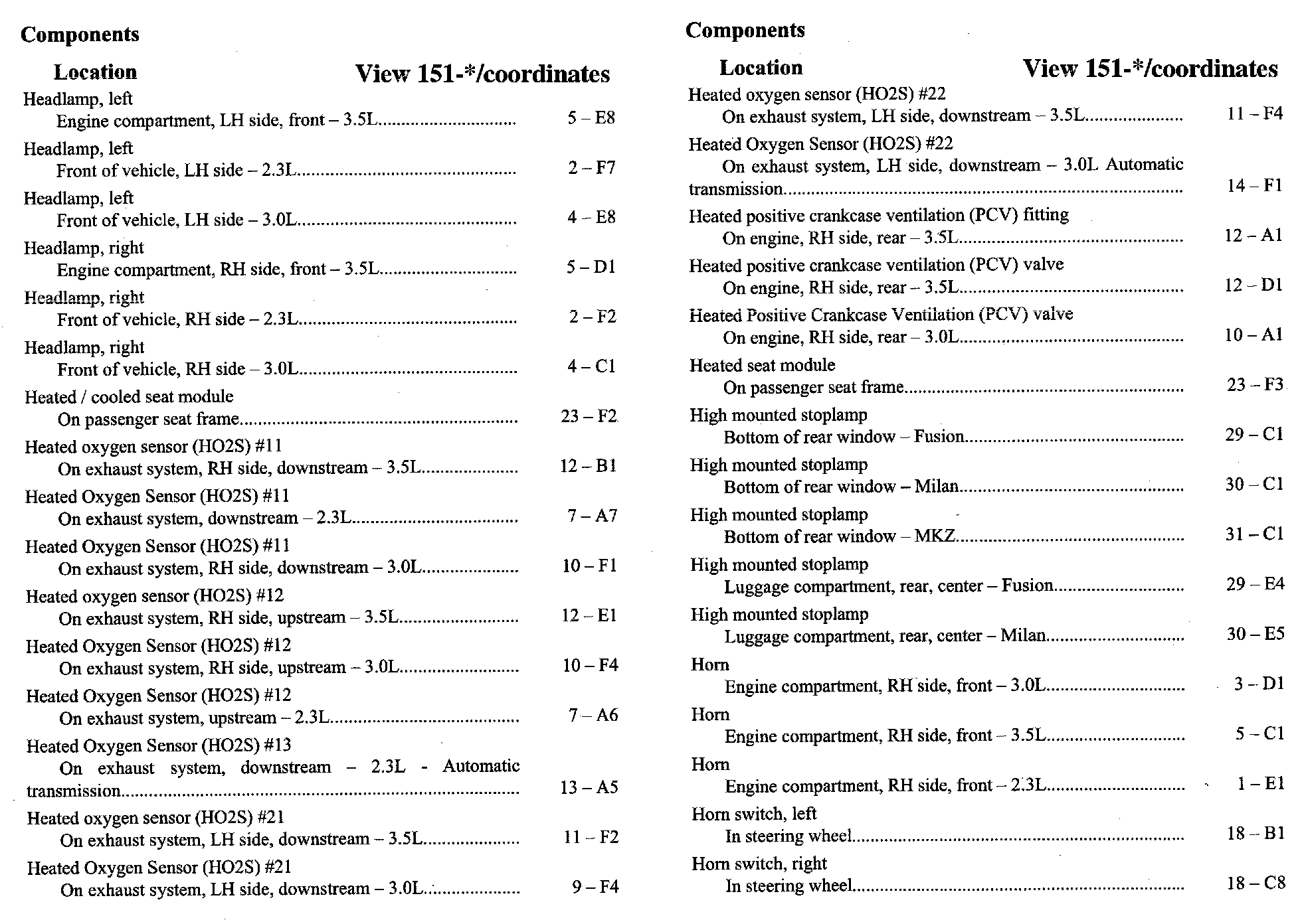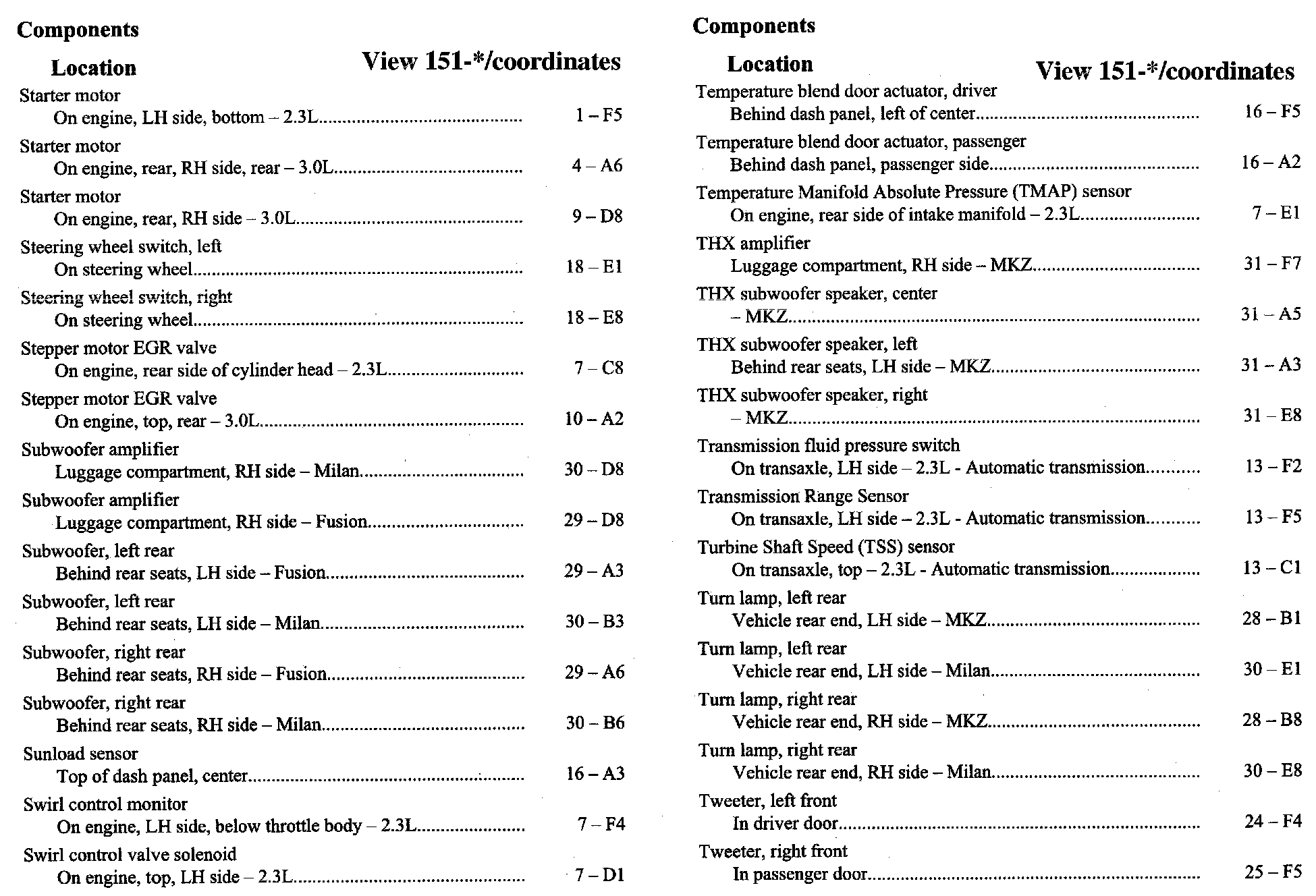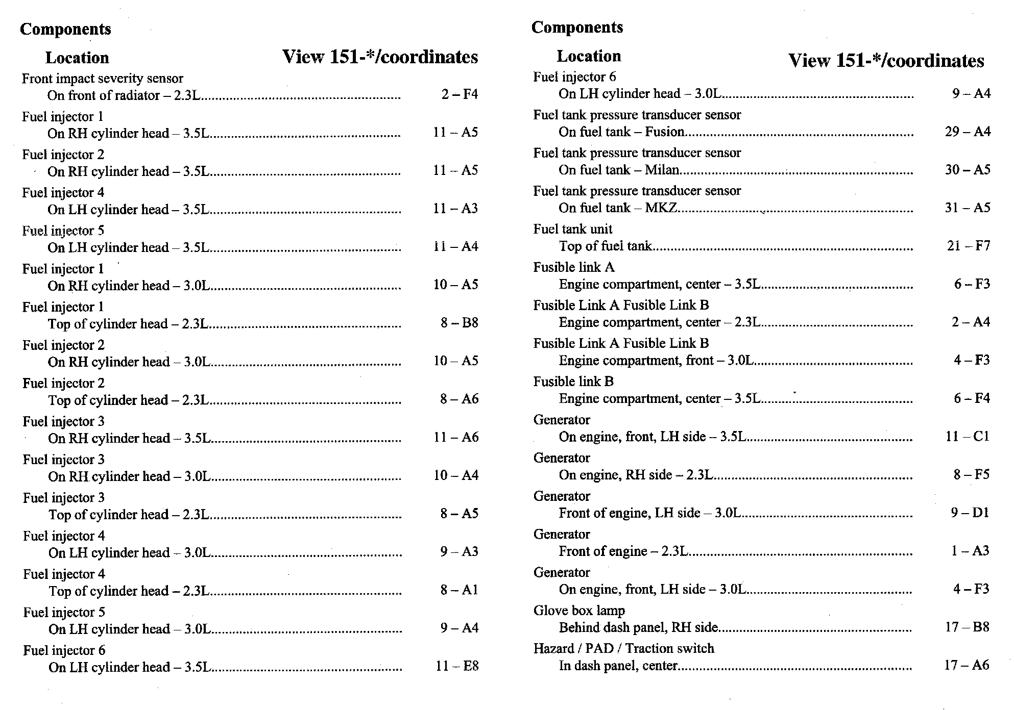 PLEASE NOTE: If a link on the Component Location Index to a View is not provided, that means that the Component and/or View in question does NOT apply to the vehicle model selected.