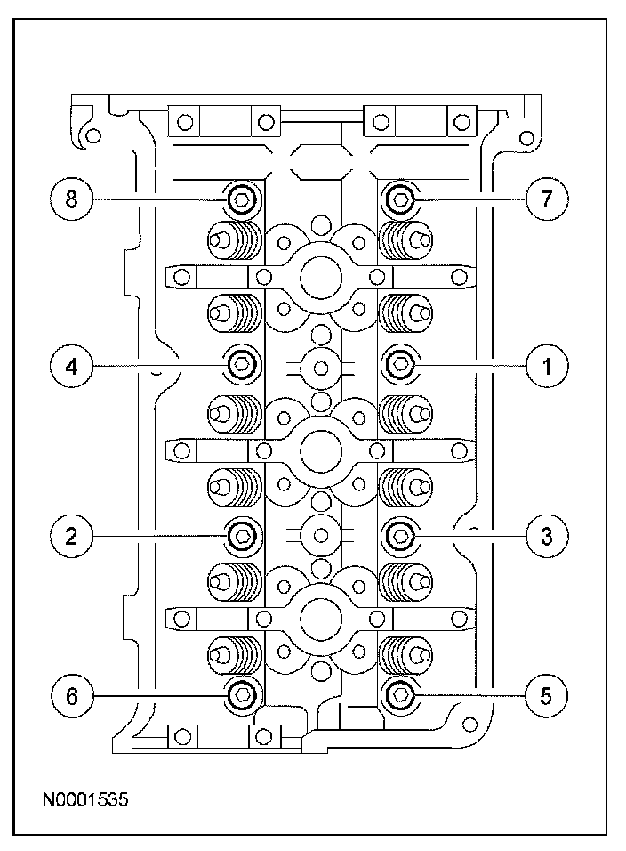 4. CAUTION: The camshaft roller followers must be installed in their original positions or damage to the engine may occur.