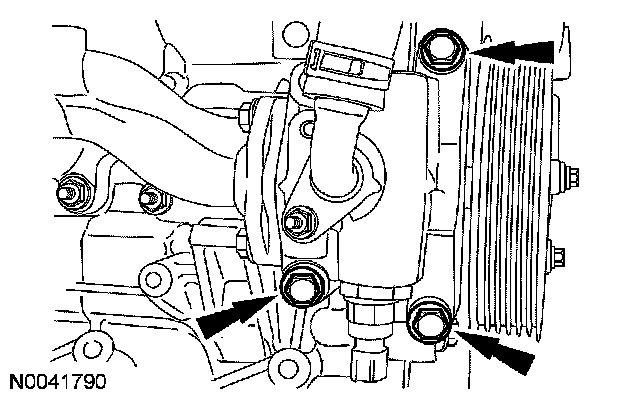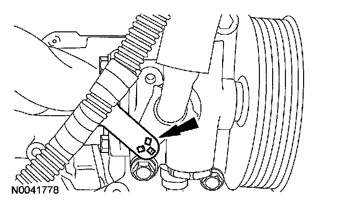 105. Position the power steering pump and reservoir assembly onto the engine and install the 3 bolts.