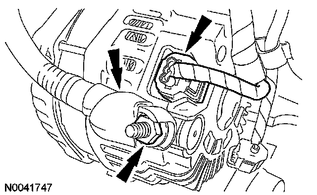 127. Connect the generator B+ cable and electrical connector and install the nut.
