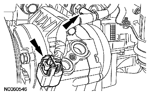 131. Connect the A/C compressor electrical connector and the wiring harness retainer.