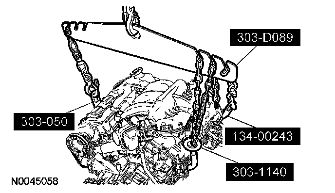 142. Using the special tools and a suitable engine crane, remove the engine from the engine stand.