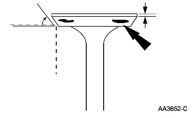 2. Inspect for abnormalities on the valve face and seat. Install a new cylinder head assembly if abnormalities are found.