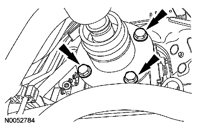 48. Remove the 3 transaxle control cable bracket bolts and position the cable aside.