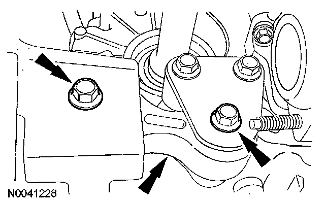 20. Remove the 2 bolts and the engine roll restrictor.
