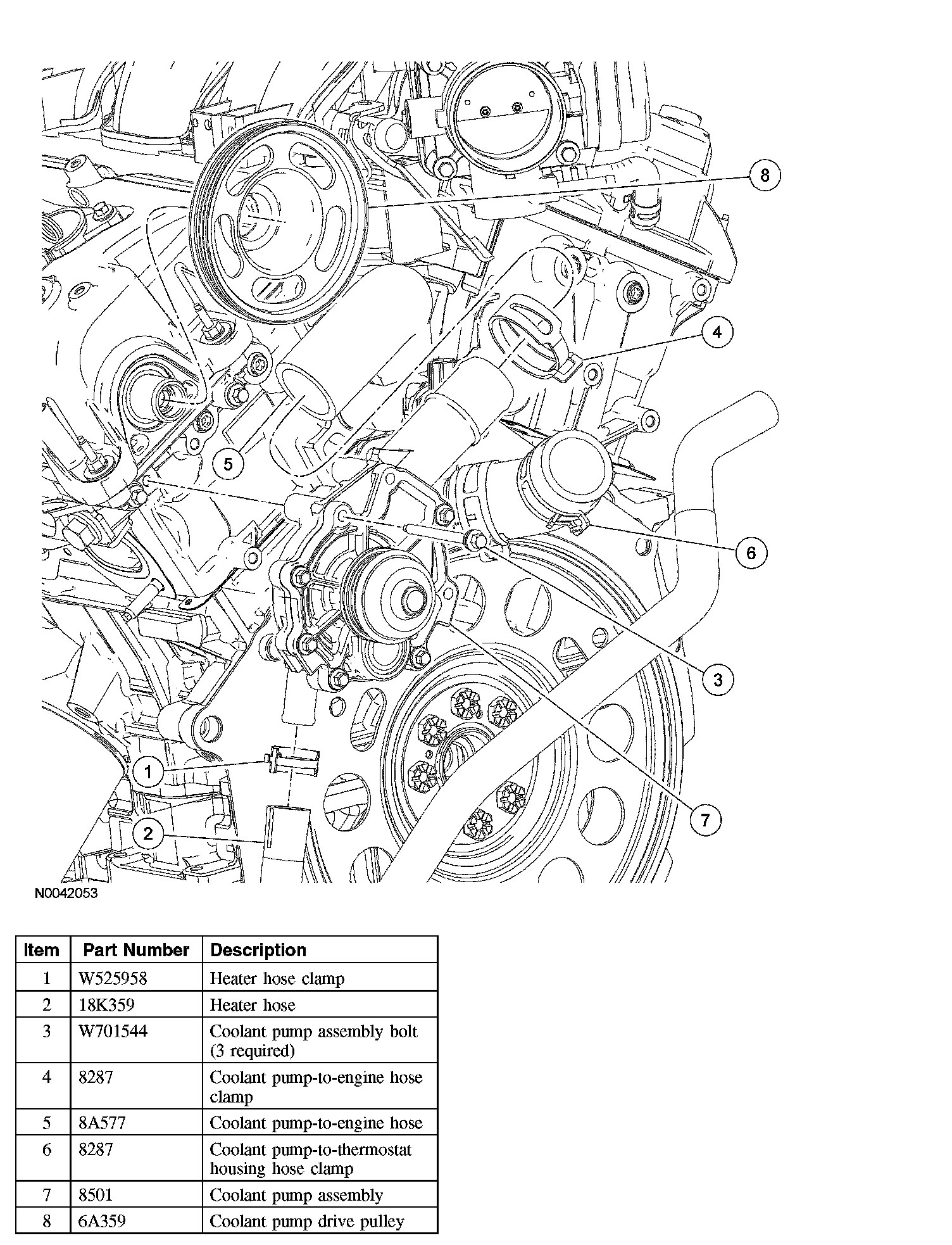 6. Disconnect the coolant pump-to-engine hose and position aside.