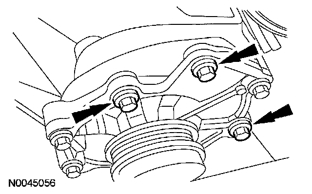4. NOTE: Install the coolant pump drive pulley flush with the end of the camshaft.