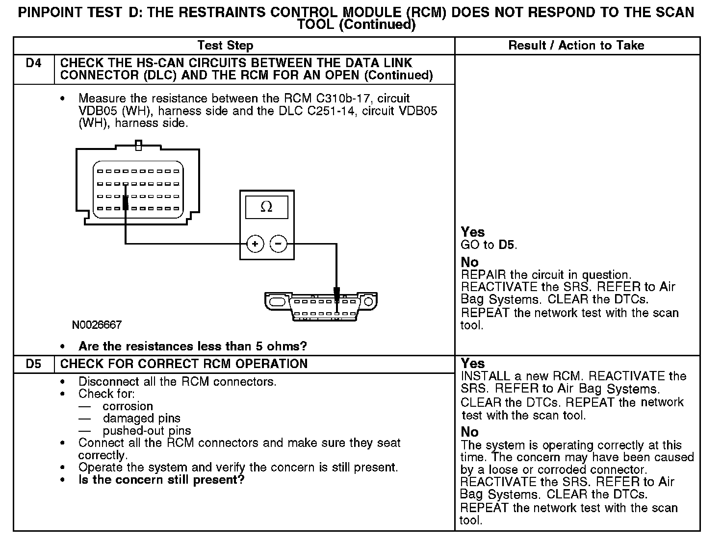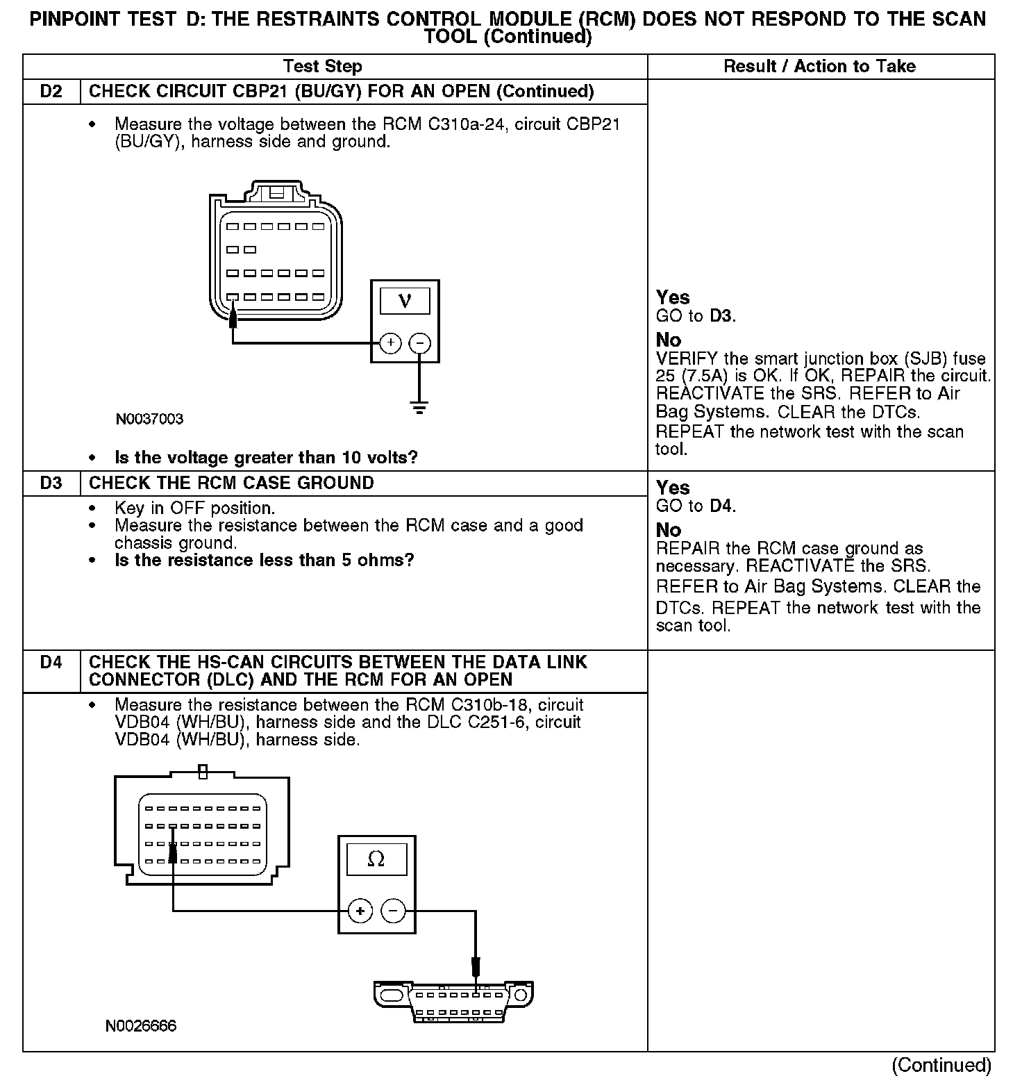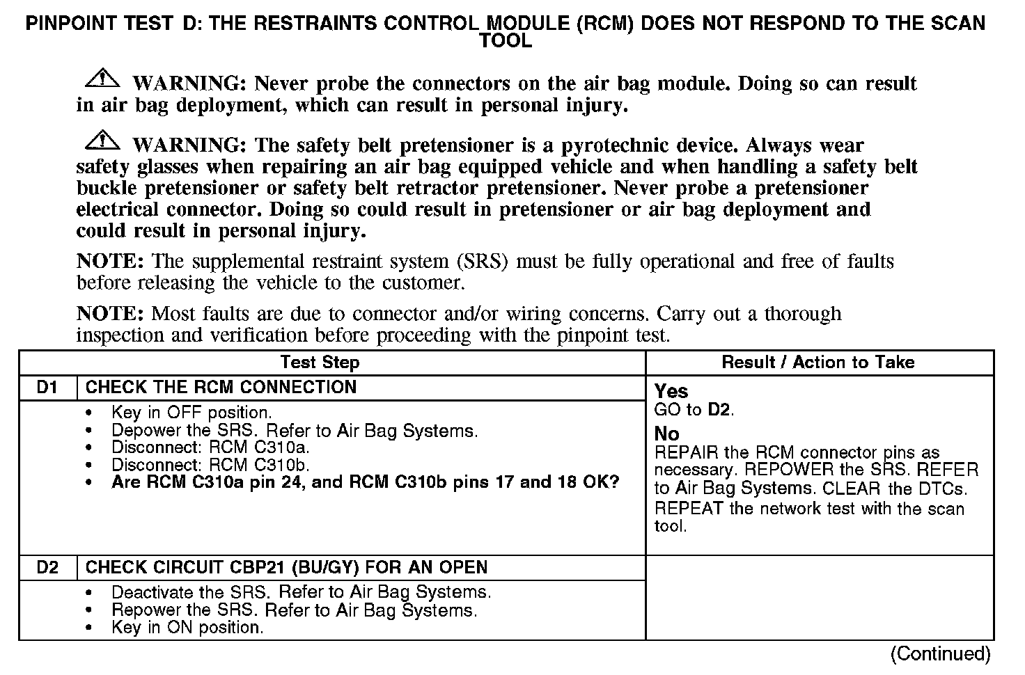 PINPOINT TEST D: THE RESTRAINTS CONTROL MODULE (RCM) DOES NOT RESPOND TO THE SCAN TOOLD1-D2: