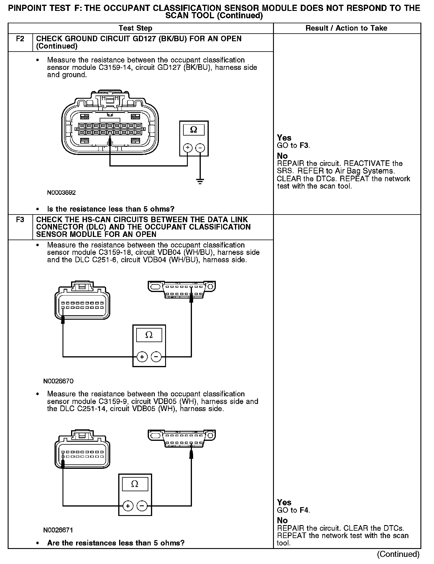 PINPOINT TEST F: THE OCCUPANT CLASSIFICATION SENSOR MODULE DOES NOT RESPOND TO THE SCAN TOOL