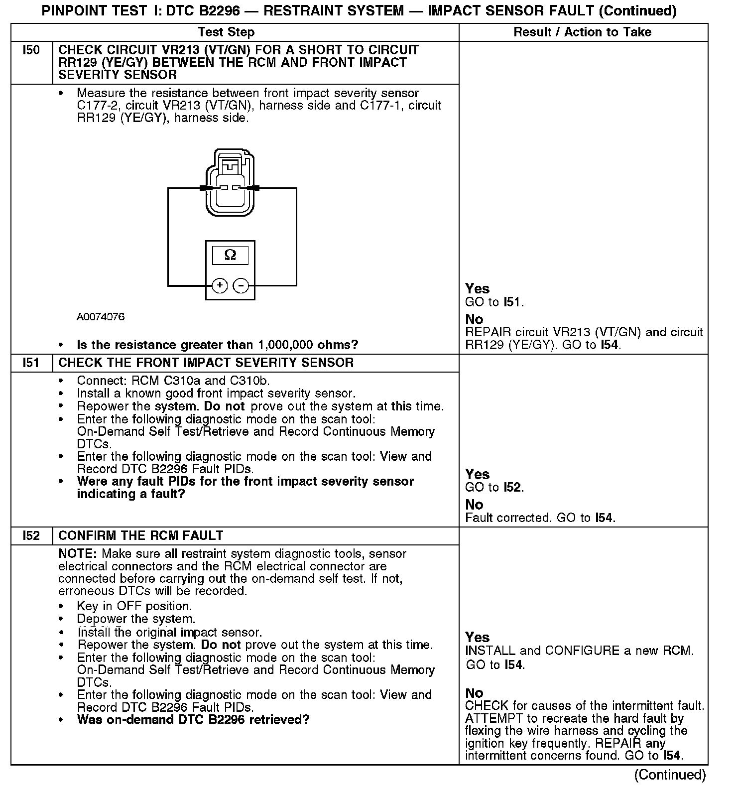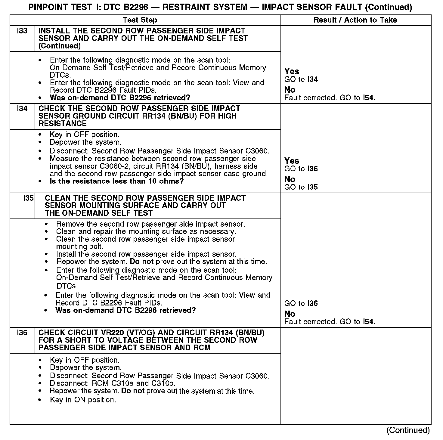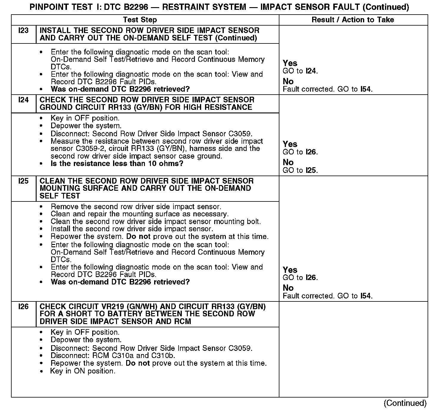 Test I: DTC B2296 - Restraint System - Impact Sensor Fault