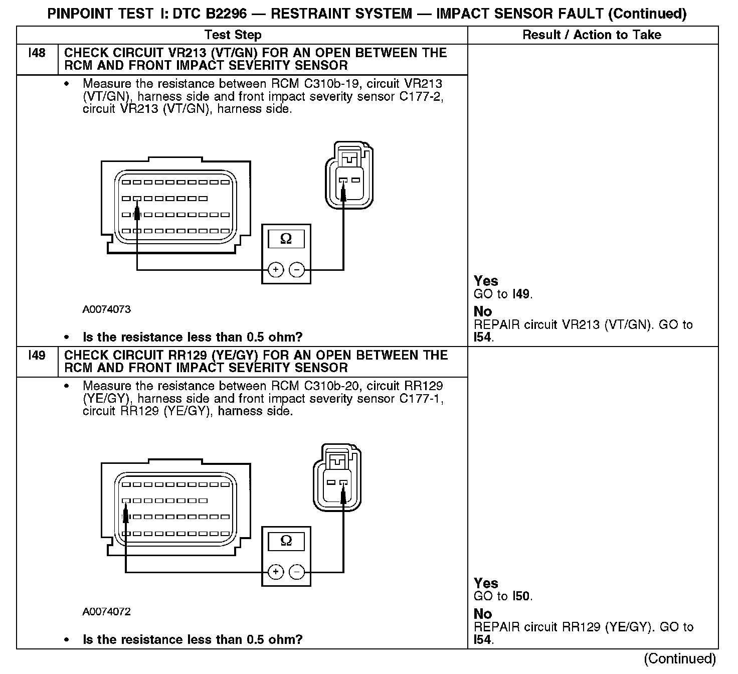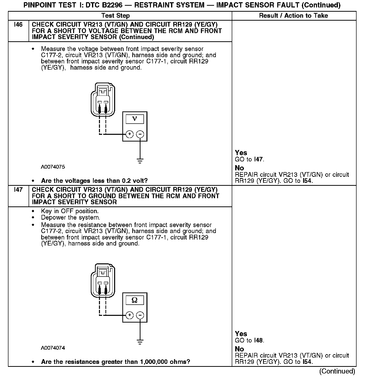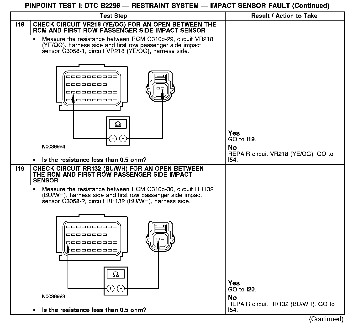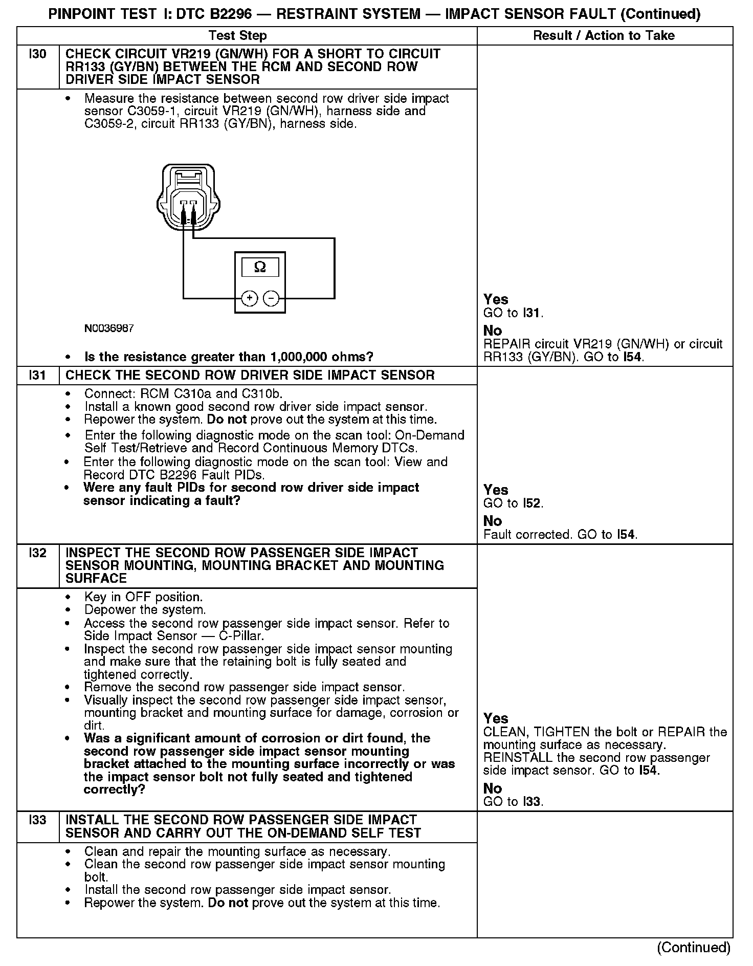 Test I: DTC B2296 - Restraint System - Impact Sensor Fault