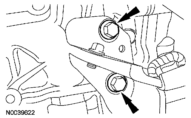 29. Install the catalytic converter-to-engine block bracket and install the 2 bolts.