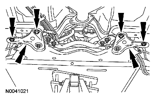 35. Position the subframe support brackets in place and loosely install the bolts.