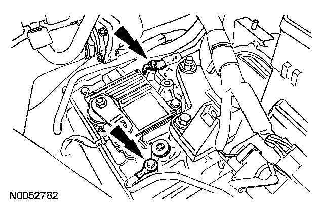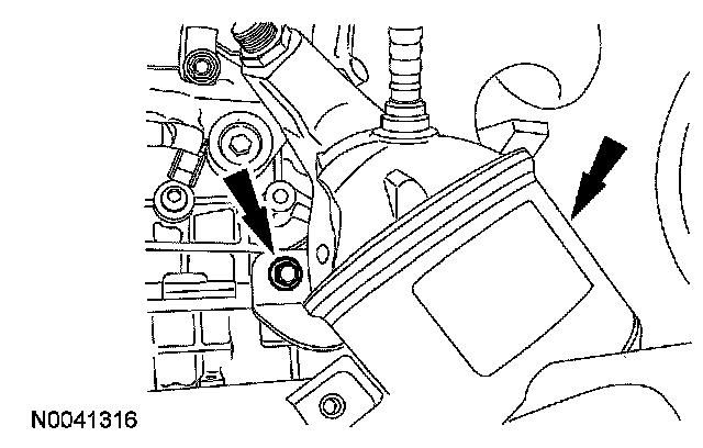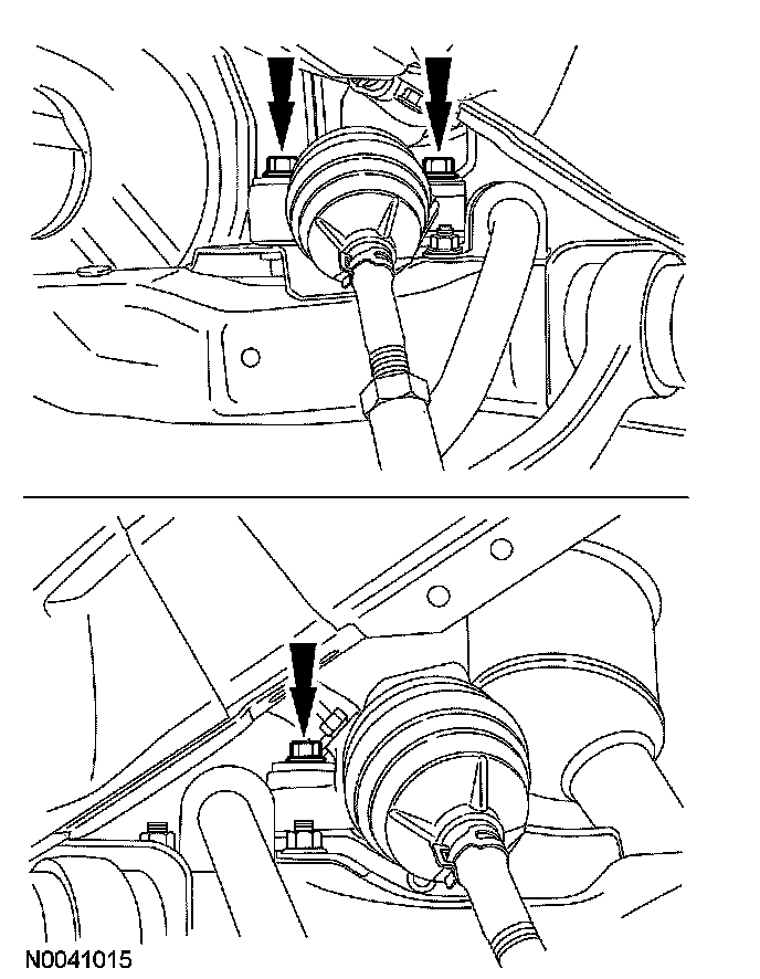 Remove the 2 bolts from the engine roll restrictor bracket.