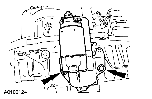10. Remove the 2 bolts and the starter.