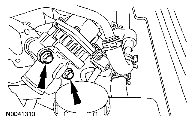 14. Remove the 2 bolts and the EGR valve. Discard the gasket.