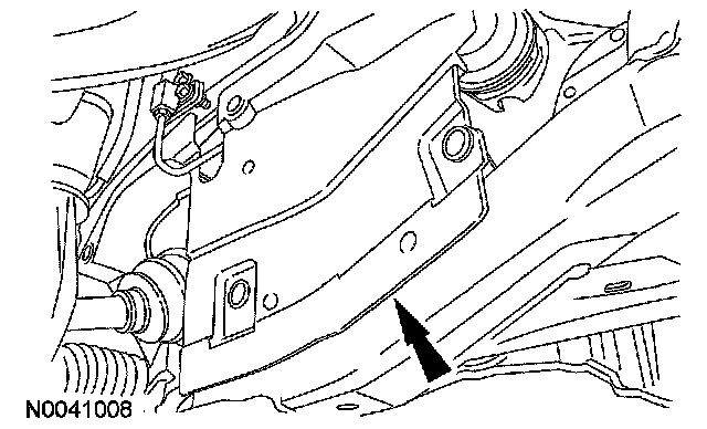 19. Remove the pin-type retainers and remove the LH front structure to subframe splash shield.