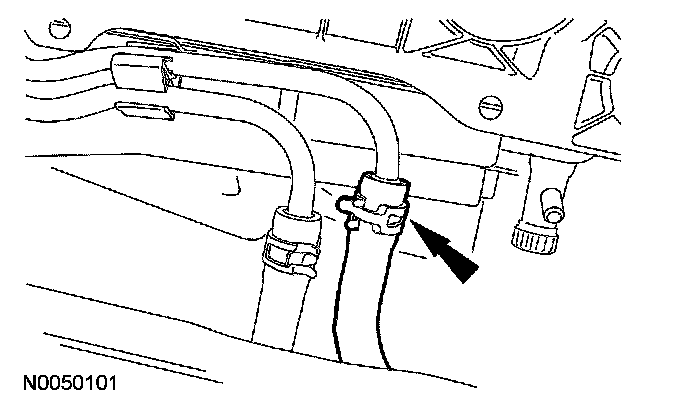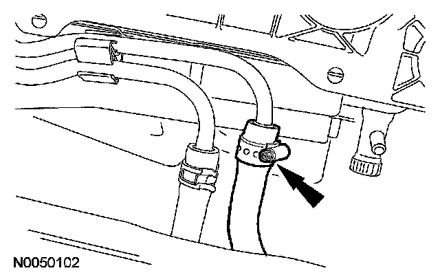 3. With the vehicle in NEUTRAL, position it on a hoist. Inspect the transmission fluid cooler lines for damage. Install new transmission fluid cooler lines as needed.