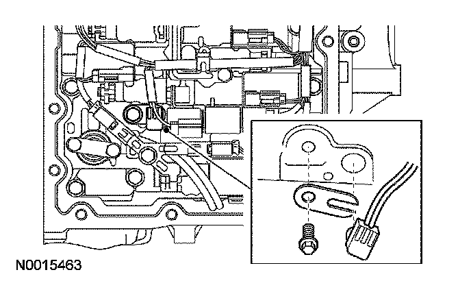 8. Remove the bolt and the lock plate and pull out the transmission fluid temperature sensor.