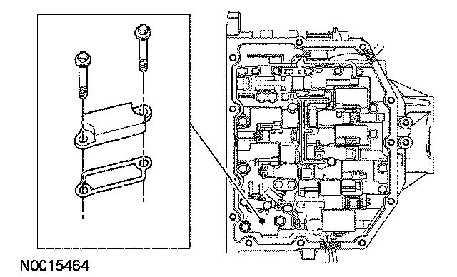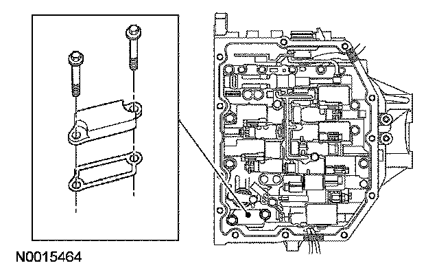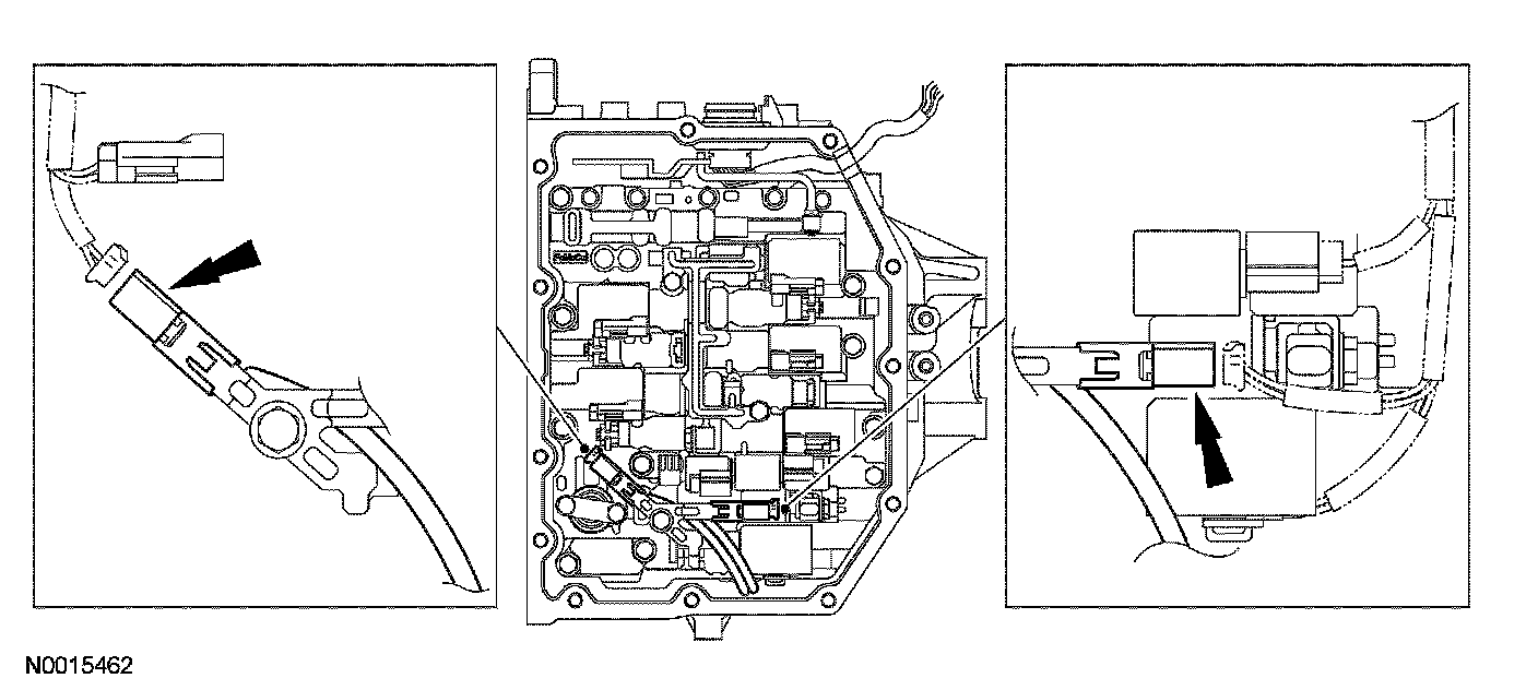 1. CAUTION: When installing the main control valve body, place the wire harness in the open space of the separate plate, being careful not to pinch the harness. Damage to the harness will occur.
