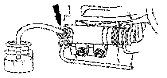 1. Attach a rubber drain hose to the bleeder screw and submerge the free end of the hose in a container partially filled with clean brake fluid.