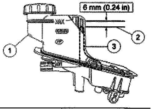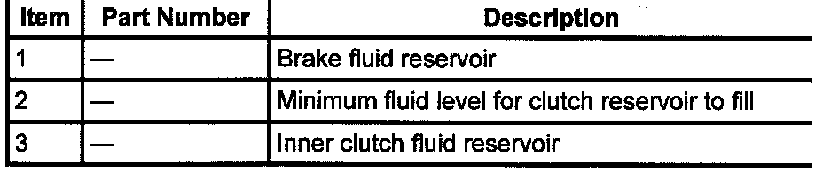 5. NOTICE: The clutch system fluid is separated from the brake system fluid by a separate reservoir within the brake reservoir. Do not allow the fluid level in the reservoir to fall more than 6 mm (0.24 in) below the MAX mark during the bleeding operation. Keep the brake master cylinder reservoir filled with clean, specified brake fluid. Never reuse the brake fluid that has been drained from the hydraulic system. Repeat Steps 2 through 4 until no air bubbles appear in the fluid.