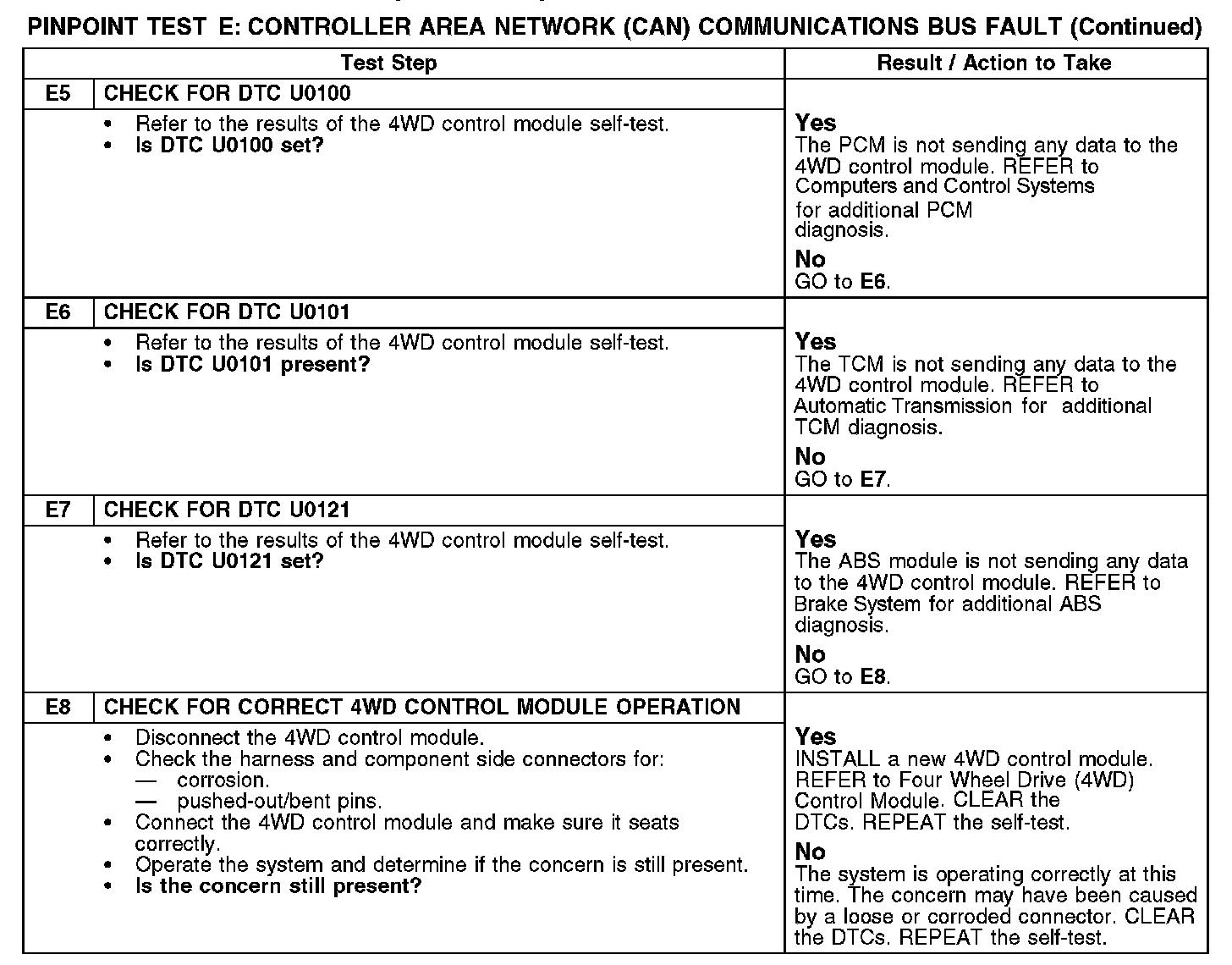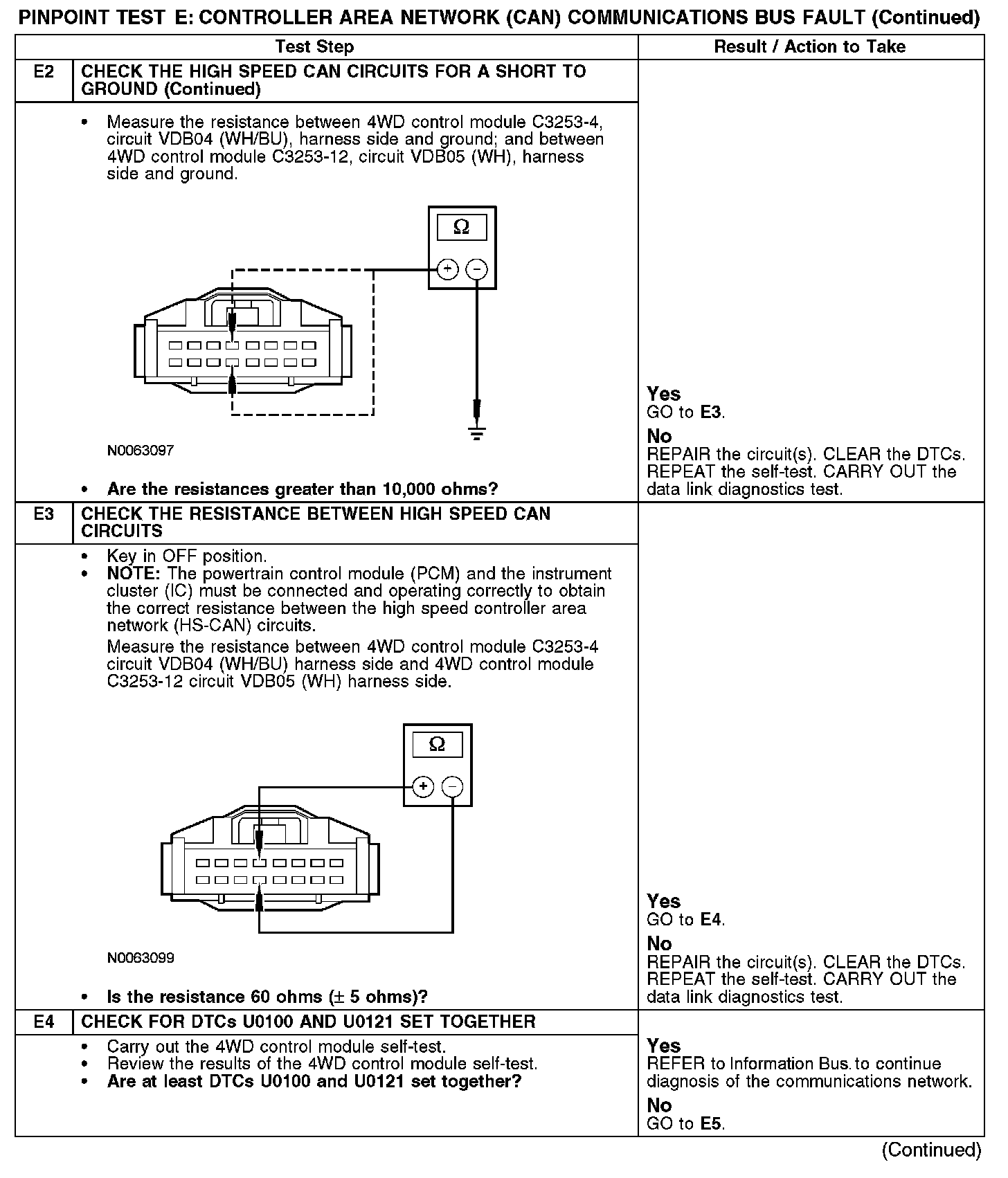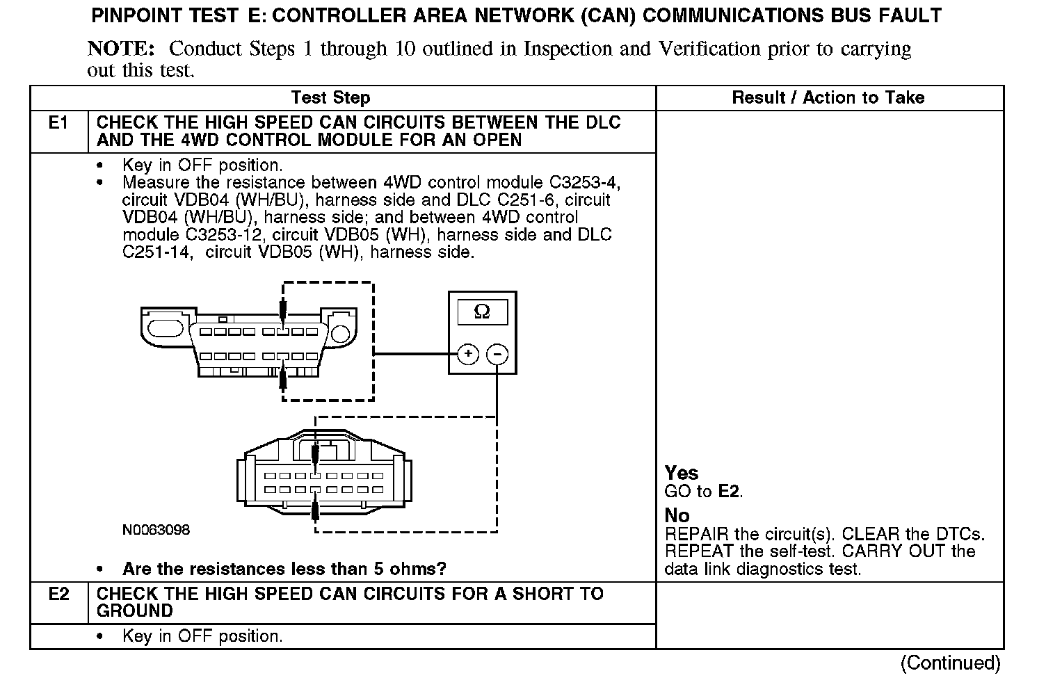 Test E: Controller Area Network (CAN) Communications Bus FaultRefer to Vehicle/Diagrams, All Wheel Drive (AWD) Systems for schematic and connector information.